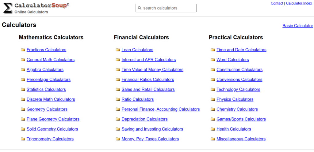 The Calculator Site includes:
